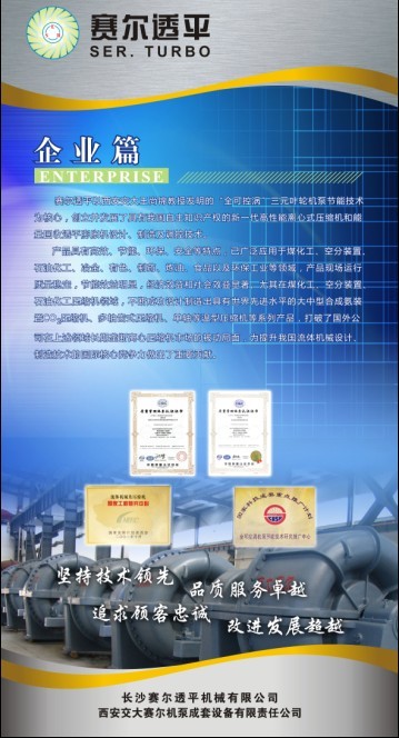 長沙賽爾透平機械有限公司成立于2004年,是一家專業(yè)生產(chǎn)靜葉可調(diào)“全可控渦”三元葉輪離心鼓風機、離心壓縮機、能量回收透平膨脹機的高新技術企業(yè)。公司產(chǎn)品以西安交大王尚錦教授發(fā)明的“全可控渦”三元葉輪機泵節(jié)能核心技術為依托,采用完全自主知識產(chǎn)權的發(fā)明專利技術:1〉國家發(fā)明三等獎《徑、混流式“全可控渦”三元葉輪設計方法及其流型》,2〉發(fā)明專利《徑、混流式園柱面割線元素三元葉輪的設計方法》,3〉發(fā)明專利《徑、混流式三元葉輪單軸進刀銑削工藝》,形成了一整套離心鼓風機、離心壓縮機、能量回收透平膨脹機的制造體系,其產(chǎn)品廣泛應用于石油化工、冶金、有色、能源環(huán)保工業(yè)、以及空分裝置和煤氣化領域。 公司擁有從美國進口的12軸五座標聯(lián)動臥式數(shù)控加工中心、真空釬焊熱處理爐,國內(nèi)先進的四座標聯(lián)動臥式數(shù)控加工中心、大型落地鏜銑床、動平衡機、性能試驗臺位等重大裝備。 公司依靠西安交大機械、材料、動力、能源、電子、信息等十一個國家重點學科,五個國家重點實驗室、四個國家專業(yè)實驗室及流體機械與壓縮機《國家工程研究中心》致力于透平機械研究和制造領域的不斷進取,并與廣大用戶一起發(fā)展,開創(chuàng)燦爛的未來。
