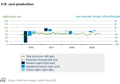 美國能源信息管理局EIA周二發(fā)布短期能源展望報告稱,2018年,美國煤炭產(chǎn)能預計達到7.512億短噸(約6.8億噸),較之上月預測的上漲1.7%。