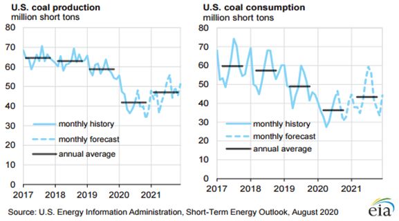 8月11日,美國(guó)能源信息署(EIA)發(fā)布8月份《短期能源展望》顯示,2020年,美國(guó)煤炭產(chǎn)量預(yù)計(jì)為5.022億短噸(4.56億噸),較7月份預(yù)期增加約100萬短噸,較2019年實(shí)際產(chǎn)量7.05億短噸下降28.8%。 《短期能源展望》顯示,這一預(yù)估產(chǎn)量將創(chuàng)1963年的4.77億短噸以來新低。2021年,美國(guó)煤炭產(chǎn)量預(yù)計(jì)將回升至5.64億短噸。 能源信息署表示,自今年年初以來,新冠肺炎疫情爆發(fā)導(dǎo)致電力需求低迷、煤礦減產(chǎn),該機(jī)構(gòu)已將美國(guó)2020年煤炭產(chǎn)量預(yù)期較最初值下調(diào)9440萬短噸。