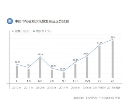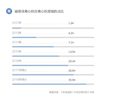 毫不夸張的講,正是憑借海爾的一己之力,叩開了磁懸浮中央空調(diào)在中國市場的大門。可喜的是,在今年的中國制冷展上,我們看到包括格力、美的在內(nèi)超過30家的廠商開始加入到磁懸浮離心機(jī)拓展的陣營中。相關(guān)機(jī)構(gòu)預(yù)測,到2018年底,磁懸浮離心機(jī)組在離心機(jī)的市場占有率有望接近40%,整體規(guī)模達(dá)到40億元,未來幾年內(nèi),磁懸浮離心機(jī)組都將保持60%左右的高增速,迎來徹底的爆發(fā)期。