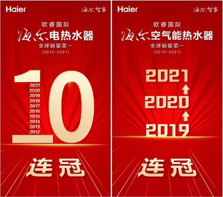 在最新發(fā)布的兩項全球熱水器行業(yè)認證中,中國品牌又拿到了第一!2022年3月9日,世界權威調(diào)研機構歐睿國際發(fā)布了2021年全球熱水器市場地位聲明,海爾電熱水器和空氣能熱水器拿下全球第一,這已是海爾電熱水器第10次、空氣能熱水器第3次蟬聯(lián)全球第一,也是中國品牌在世界舞臺上的又一次勝利。
