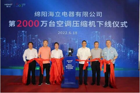 2022年6月18日,綿陽海立第2000萬臺空調(diào)壓縮機(jī)順利下線。