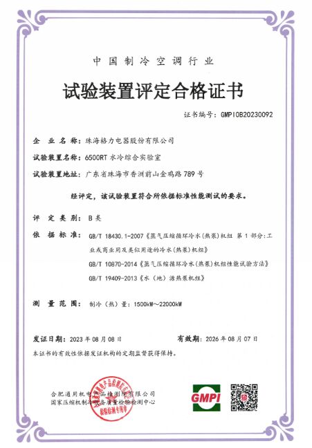 近日,格力電器6500RT水冷綜合實驗室經(jīng)合肥通用機電產(chǎn)品檢測院(GMPI)專家現(xiàn)場審核驗證,憑借高精度的測試數(shù)據(jù)、穩(wěn)定的運行以及良好的結(jié)果一致性正式獲得國家壓縮機制冷設(shè)備質(zhì)量檢驗檢測中心認(rèn)可,獲頒試驗裝置評定合格證書。值得一提的是,據(jù)GMPI數(shù)據(jù)顯示,該實驗室也是目前行業(yè)內(nèi)最大的水冷綜合實驗室。