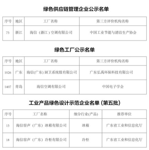 近日,工業(yè)和信息化部公示了2023年度綠色制造名單,海信空調(diào)有限公司、海信(廣東)廚衛(wèi)系統(tǒng)股份有限公司入選國家綠色工廠;海信(浙江)空調(diào)有限公司入選國家綠色供應(yīng)鏈管理企業(yè)。在工信部第五批工業(yè)產(chǎn)品綠色設(shè)計(jì)示范企業(yè)名單中,海信容聲(廣東)冰箱有限公司、海信容聲(廣東)冷柜有限公司同樣榜上有名。至此,海信家電累計(jì)已有國家級綠色工廠7個(gè)、國家綠色供應(yīng)鏈2個(gè)、國家級工業(yè)產(chǎn)品綠色設(shè)計(jì)示范企業(yè)5個(gè)、省級綠色工廠4個(gè),數(shù)量及覆蓋率處于行業(yè)領(lǐng)先地位。
