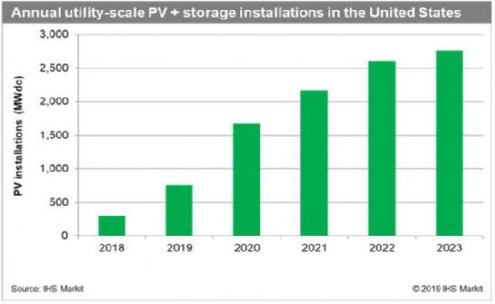 根據(jù)調(diào)研機(jī)構(gòu)IHS Markit公司調(diào)查,美國今年將成為全球規(guī)模最大并網(wǎng)儲能市場,這主要得益于光伏+儲能項目增加部署和峰值容量需求。 今年在美國部署的并網(wǎng)儲能系統(tǒng)裝機(jī)容量預(yù)計將達(dá)到712MW,幾乎是2018年376MW的兩倍。這將有助于美國超越韓國,而今年韓國儲能部署裝機(jī)容量可能會大幅下降至600MW以下。 美國日益增長的儲能市場正受到重大監(jiān)管政策實施、主要應(yīng)用場景增加以及不同地區(qū)多樣化推動。 美國儲能市場的增長 2019年美國儲能市場的強(qiáng)勁表現(xiàn)與2018年相比將有一個徹底轉(zhuǎn)變,當(dāng)時美國的儲能部署停滯不前,韓國的儲能部署迅速發(fā)展。2018年韓國創(chuàng)下了并網(wǎng)儲能市場新記錄,而去年全球儲能裝機(jī)容量幾乎翻了一番,這主要是受到韓國儲能市場2018年上半年快速增長的推動。然而,去年美國市場增長速度較慢,儲能部署僅增長22%。 在2019年,有幾個主要因素促使美國儲能市場得之增長,其中包括: ?美國聯(lián)邦政策(如美國聯(lián)邦能源監(jiān)管委員會第841號令)正在推動全國各地的區(qū)域電網(wǎng)運(yùn)營商納入額外的市場機(jī)制,使更多的儲能資源參與批發(fā)市場活動。 ?目前可用于太陽能的投資稅收抵免(ITC)正在推動快速增長的電網(wǎng)規(guī)模光伏+儲能項目發(fā)展,特別是在美國西部。 ?州級儲能任務(wù)和激勵措施正在推動儲能市場發(fā)展,這些市場也在努力應(yīng)對相對較高水平的可再生能源滲透。 ?公用事業(yè)公司正在加大對用戶側(cè)和電網(wǎng)側(cè)儲能資源采購力度,以整合更高水平的可再生能源,并提供額外的電網(wǎng)服務(wù),如需求響應(yīng)。 光伏+儲能項目的部署增長將推動美國儲能市場發(fā)展 IHS Markit公司預(yù)計,從2019年到2023年,美國將有裝機(jī)容量超過2GW儲能系統(tǒng)與電網(wǎng)規(guī)模的太陽能發(fā)電(PV)系統(tǒng)配套部署。投資稅收抵免(ITC)與太陽能發(fā)電場結(jié)合儲能系統(tǒng)推動了過去一年市場發(fā)展,并將成為電網(wǎng)規(guī)模太陽能與儲能共址部署的主要驅(qū)動力。這些系統(tǒng)中大部分預(yù)計將部署在美國西部市場,其中包括夏威夷、加利福尼亞、亞利桑那州,從而使太陽能發(fā)電在相對飽和的市場中得到進(jìn)一步整合。 就安裝的太陽能發(fā)電容量而言,預(yù)計從2019年至2023年,裝機(jī)容量為10GW的電網(wǎng)規(guī)模太陽能發(fā)電設(shè)施將與儲能系統(tǒng)配套部署,占該期間電網(wǎng)規(guī)模太陽能發(fā)電設(shè)施部署的16%。