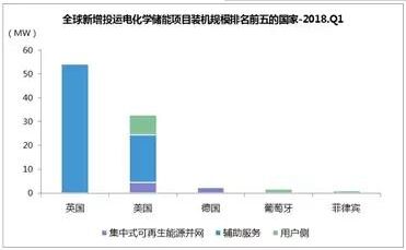 據(jù)EnergyTrend儲(chǔ)能不完全統(tǒng)計(jì),海外市場(chǎng)在2020年第一季度共發(fā)布了約3.59GW的投標(biāo),涵蓋了太陽能發(fā)電、電池儲(chǔ)能系統(tǒng)及抽水發(fā)電儲(chǔ)能項(xiàng)目等。 其中,據(jù)行業(yè)機(jī)構(gòu)數(shù)據(jù)顯示,2018年一季度,全球新增投運(yùn)電化學(xué)儲(chǔ)能項(xiàng)目的裝機(jī)規(guī)模為94MW,同比下降37%。 從地域分布上看,英國新增投運(yùn)項(xiàng)目的裝機(jī)規(guī)模最大,為54.5MW,美國緊隨其后。英國和美國的項(xiàng)目主要應(yīng)用在輔助服務(wù)領(lǐng)域,該領(lǐng)域分別占英國和美國投運(yùn)項(xiàng)目的99%和60%。 從應(yīng)用分布上看,輔助服務(wù)領(lǐng)域的裝機(jī)規(guī)模最大,為73.8MW,占比為79%,同比增長(zhǎng)228%,用戶側(cè)和集中式可再生能源并網(wǎng)領(lǐng)域分列二、三位,占比分別為14%和7%。 從技術(shù)分布上看,鋰離子電池的裝機(jī)規(guī)模最大,為93.7MW,占比為99.7%,它在各類應(yīng)用領(lǐng)域中均有分布,且其在輔助服務(wù)領(lǐng)域中所占的比重最大,為79%。