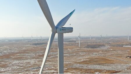 在吉林省白城市通榆縣境內,一排排風機緩緩轉動,由中國綠發(fā)建設的通榆二期10萬千瓦風電項目于去年12月完成啟動試運行,正式并網發(fā)電。盡管存在大風、霜凍等天氣影響,風電場依然在155天內完成全部工程建設,實現(xiàn)當年核準、當年開工、當年建成、當年投運。據(jù)測算,風電場投產后每年可提供2.99億千瓦時清潔電力,節(jié)約標準煤3.68萬噸,減少二氧化碳排放29.84萬噸。
