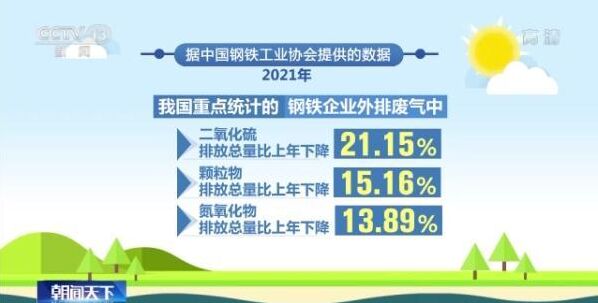據中國鋼鐵工業(yè)協會提供的數據,2021年,我國重點統(tǒng)計的鋼鐵企業(yè)外排廢氣中二氧化硫排放總量比上年下降21.15%,顆粒物排放總量比上年下降15.16%,氮氧化物排放總量比上年下降13.89%。