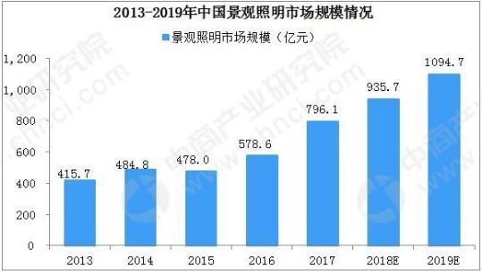 同時隨著照明技術的發(fā)展、照明應用領域的發(fā)展和照明產(chǎn)業(yè)的快速發(fā)展,通用照明領域市場規(guī)模擴大的同時,其市場滲透率也不斷提升。根據(jù)數(shù)據(jù),2016年通用照明產(chǎn)品國內市場滲透率達到42%,較2015年提高10%。健康智能光源系統(tǒng)作為新一代的照明產(chǎn)品,其在光效、顯色指數(shù)、智能控制、健康護眼等方面均有較大提升,因此隨著各國淘汰白熾燈計劃的繼續(xù)推進、LED照明向健康智能照明技術發(fā)展的趨勢以及健康智能照明產(chǎn)品性價比的提升,未來健康智能光源系統(tǒng)在通用照明領域的市場規(guī)模及產(chǎn)品滲透率仍將持續(xù)提升。 智能照明是照明產(chǎn)業(yè)發(fā)展的新趨勢。 2015年5月,國務院發(fā)布了《中國制造2025》,在戰(zhàn)略任務和重點部分將發(fā)展“智能照明電器”列為推進信息化與工業(yè)化深度融合加快發(fā)展的智能制造裝備和產(chǎn)品之一。 智能照明技術是通過網(wǎng)絡連接到控制系統(tǒng),利用智能客戶端對燈光進行調控,改變燈光亮度、顏色、色溫及模式以調配出更舒適、安全、節(jié)能、健康的適宜光環(huán)境。從發(fā)展趨勢來看,智能照明將是未來智能家居、智慧城市的重要組成部分,將會伴隨著智能家居、智慧城市的發(fā)展和智能控制技術的進步而逐步得到推廣。 景觀照明 景觀照明領域景觀照明是指在戶外通過人工光以裝飾和造景為目的的照明。根據(jù)照明對象的不同可分為廣場、建筑、園林綠地、商業(yè)街區(qū)、山體水系景觀照明和其他公共設施的裝飾性照明等。隨著超高光效光源技術、智能控制技術的發(fā)展,景觀照明行業(yè)也向節(jié)能和智能化的趨勢發(fā)展。 國民經(jīng)濟增長和城市化進程推動景觀照明行業(yè)發(fā)展。我國宏觀經(jīng)濟多年來保持較快增長,經(jīng)濟實力的提升帶來更高層次的需求,如改善生活品質、展現(xiàn)城市風貌等。城市化率水平不斷提升使得廣場、綠地、公園、道路、建筑物等景觀亮化的潛在需求不斷增加,并且從大城市逐漸擴展至中小城市。此外,受益于國家基礎設施建設投資、文化旅游政策、“特色小鎮(zhèn)”、PPP模式等產(chǎn)業(yè)政策的推動,與城市發(fā)展相關的照明工程需求亦隨之增長。 受益于全球各個國家或地區(qū)政策推廣支持,景觀亮化市場滲透率不斷提高,據(jù)預測,2016年全球景觀亮化市場達到2450億元,2017年達到2744億元,同時中國已成最大的景觀照明市場,景觀照明市場規(guī)模從2013年的416億元增長至2017年的796億元,期間年均復合增長率達21.22%。預計2019年行業(yè)規(guī)模將超1000億元。