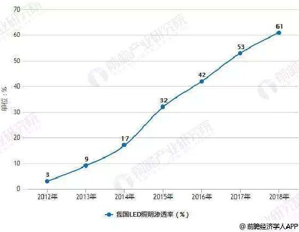 2012-2018年我國LED照明滲透率統(tǒng)計(jì)情況