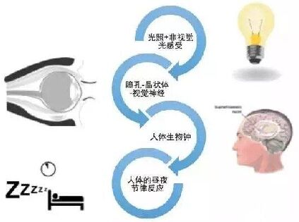 光對人的生物效應可分為視覺效應和非視覺效應。 (1)光的視覺效應: 可見光穿過眼睛的角膜,通過晶狀體成像在視網(wǎng)膜上,經(jīng)感光細胞轉化為生理信號,視神經(jīng)接收后產(chǎn)生視覺,從而產(chǎn)生對空間中物體的顏色、形狀和距離的信息的判斷。視覺還可以引起人們心理機理反應,這就是視覺的心理效應。 有兩類視覺細胞:一類是錐狀細胞,感覺光度和色彩;第二類是桿狀細胞,只能感知光度,但敏感度是前者的一萬倍。 日常生活中的許多現(xiàn)象屬于光的視覺效應: 臥室、餐廳、咖啡廳,暖色光(如粉紅色和淺紫色)使整個空間具有溫暖、輕松的氣氛,同時使人皮膚、面容顯得更健康。 在夏季,藍、綠色的光會使人感覺涼爽;而冬季,紅色使人感覺到溫暖。 強烈的多彩照明可以把氣氛變得活躍和生動起來,增加繁華熱鬧的節(jié)日氣氛。 現(xiàn)代家庭居室也常用一些紅綠的裝飾燈來點綴起居室和餐廳,以增加歡樂的氣氛。 有些餐廳既無整體照明,也無桌上吊燈,只用柔弱的星星點點的燭光照明來烘托氣氛。 (2)光的非視覺效應,ipRGC的發(fā)現(xiàn): 人眼視網(wǎng)膜上存在第三類感光細胞-內(nèi)在光敏性視網(wǎng)膜神經(jīng)節(jié)細胞(intrinsicallyphotosensitive reTInal ganglion cells (ipRGCs)),負責調(diào)節(jié)機體視覺以外的非視覺效應,如管理時間的功能,協(xié)調(diào)和控制人們在不同時段里的活動節(jié)律和幅度。 這種非視覺效應也稱司辰視覺效應(citopiceffects), 這就是2002年英國Brown大學的Berson,Dunn和Takao在哺乳動物中發(fā)現(xiàn)的,是2002年世界十大發(fā)現(xiàn)之一。 研究表明家鼠的非視覺效應在465nm,但對人類來說,遺傳學的研究表明應在480~485nm(錐狀細胞和桿狀細胞的峰值分別為555nm和507nm)。 (3)ipRGC控制生物鐘的原理: ipRGC在人體大腦中有自己的神經(jīng)傳輸網(wǎng)絡,與視覺神經(jīng)傳輸網(wǎng)絡有很大的不同。接受光后,ipRGC產(chǎn)生生物電信號,傳遞到下丘腦(RHT),之后進入視交叉上核(SCN)和腦外神經(jīng)核(PVN),達到松果體(Pineal)。 松果體是大腦生物鐘的中樞,它會分泌褪黑素。褪黑素合成后,儲存在松果體內(nèi)。交感神經(jīng)興奮支配松果體細胞釋放褪黑素到流動的血液中,并誘導自然睡眠,因此其是調(diào)節(jié)生理節(jié)律的一種*重要的激素。 褪黑素的分泌具有明顯的晝夜節(jié)律,白天分泌受抑制,晚上分泌活躍。但交感神經(jīng)的興奮度與達到松果體的光的能量和顏色密切相關,光色和光照強度會影響褪黑素分泌和釋放。 除了調(diào)節(jié)生物鐘的同時,ipRGC對人體心率、血壓、警覺性、活力等都產(chǎn)生影響,都屬于光的非視覺效應。此外,光引起的生理損傷也應該歸到光的非視覺效應。