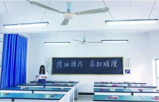 中小學(xué)生的近視問題,一直受到社會關(guān)注。有數(shù)據(jù)顯示,江蘇徐州兒童青少年總體近視率約為60%,低視力(裸眼視力低于4.5,且無法矯正)發(fā)生率為1%,嚴(yán)重影響學(xué)生的學(xué)習(xí)和日常生活。為保障青少年群體視力, 徐州市部分學(xué)校開始嘗試使用智能燈光照明設(shè)備,以適當(dāng)亮度讓學(xué)生感到舒適,尤其讓眼睛放松。 徐州市第三十三中,教室里新?lián)Q的LED護(hù)眼燈。