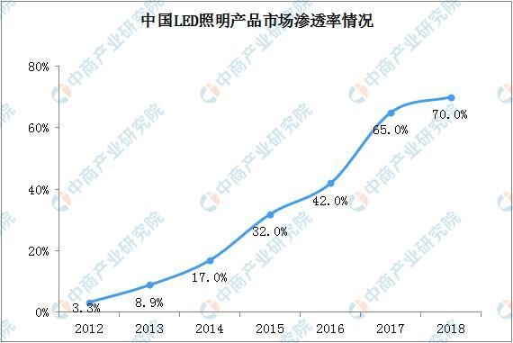 從滲透率來(lái)看,中國(guó)是LED照明產(chǎn)品最大的生產(chǎn)制造國(guó),根據(jù)國(guó)家半導(dǎo)體照明工程研發(fā)及產(chǎn)業(yè)聯(lián)盟(CSA)的統(tǒng)計(jì),中國(guó)LED照明產(chǎn)品國(guó)內(nèi)市場(chǎng)滲透率(LED照明產(chǎn)品國(guó)內(nèi)銷售數(shù)量/照明產(chǎn)品國(guó)內(nèi)總銷售數(shù)量)由2012年的3.3%快速提升至2018年的70%,遠(yuǎn)超全球平均水平。