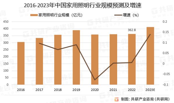 2016-2023年中國家用照明行業(yè)規(guī)模預(yù)測及增速