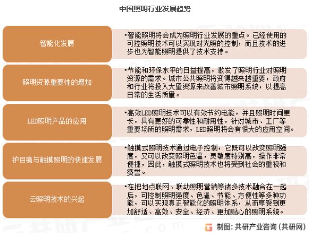 我國照明行業(yè)發(fā)展將會更加注重智能化,照明資源重要性的增加,LED照明產(chǎn)品的應(yīng)用,護(hù)目鏡與觸摸照明的快速發(fā)展,云照明技術(shù)的興起等幾個趨勢。在未來幾年里,照明行業(yè)仍會保持穩(wěn)定增長,智能化會成為照明行業(yè)未來發(fā)展的核心,能源密集型照明將逐漸出現(xiàn),照明行業(yè)將變得更加智能、更加節(jié)能。