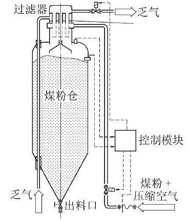 目前國內(nèi)多數(shù)從業(yè)廠商缺乏煤粉存儲安全知識,在設(shè)計、安裝煤粉儲存塔(罐) 時存在重大的安全隱患,如將煤粉儲塔(罐) 置于全封閉建筑物內(nèi),有發(fā)生自燃甚至爆炸的危險。為了保證煤粉工業(yè)鍋爐行業(yè)健康有序發(fā)展,應(yīng)圍繞在密閉空間內(nèi)煤粉的自燃發(fā)火特性開展研究,為形成煤粉儲罐完整的自主安全技術(shù)規(guī)范提供理論依據(jù)。 1.3濃相煤粉輸送技術(shù) 供料器是煤粉工業(yè)鍋爐中最為主要的設(shè)備,具備無脈動、高固氣比連續(xù)穩(wěn)定地給燃燒器供料的功能。供料不穩(wěn)定,極易發(fā)生爐膛爆燃事故,為了保證鍋爐穩(wěn)定運行,供料偏差不得超過±3% 。近年來,國內(nèi)自主煤粉供料技術(shù)主要有3類: ①借鑒電站鍋爐系統(tǒng)的供料設(shè)備,如葉輪給粉機; ②粉體輸送設(shè)備,如(改良) 螺旋輸送機; ③引進國外的技術(shù)產(chǎn)品,如氣錐結(jié)合鎖氣閥。前2類均為稀相供料,固(煤粉) 氣(空氣) 比一般小于 0.3 kg/m3,初始點火困難,不適合應(yīng)用于煤粉工業(yè)鍋爐領(lǐng)域。只有第3類為濃相供料,具備快速著火的條件,可應(yīng)用于煤粉工業(yè)鍋爐領(lǐng)域。 隨著對煤粉流動特性認(rèn)識的不斷深入,供料器從螺旋結(jié)構(gòu)形式升級為主動二次活化式。主動供料器的形式包括“星鳥”耦合文丘里(圖2) 、多孔雙轉(zhuǎn)盤及轉(zhuǎn)子秤等。煤粉經(jīng)過底部星型卸料閥周期性地卸入到中間緩沖倉,中間緩沖倉錐斗壁面多點通氣,使煤粉吸氣快速活化,流動性顯著增強。密度分布均一的煤粉流,依靠重力經(jīng)錐斗出口進入“星鳥”耦合文丘里閥組。閥組連續(xù)均勻排出的煤粉落入高速引射流混合器組件,與一次風(fēng)瞬間完成散射混合,形成高濃度風(fēng)粉流。風(fēng)粉流依靠一次風(fēng)機提供的動力,經(jīng)風(fēng)粉管道源源不斷濃相送出,進入下游燃燒器!靶区B”耦合文丘里具備二次活化、均勻連續(xù)喂料以及引射流混合發(fā)送的特點,試驗表明在供料速率2.4~4.0t/h 的工況下,“星鳥”耦合文丘里供料偏差為±1% 。