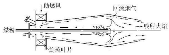 1.4 煤粉燃燒器 煤粉燃燒器是煤粉鍋爐燃燒系統(tǒng)中的關(guān)鍵設(shè)備。煤粉氣流的著火過程、爐膛中的空氣動力和燃燒工況,主要由燃燒器的結(jié)構(gòu)和爐膛的布置方式?jīng)Q定。因此,燃燒器的性能對煤粉燃燒設(shè)備運行的可靠性和經(jīng)濟性起到主要的作用。 工業(yè)鍋爐煤粉燃燒器大多是借鑒電站鍋爐燃燒器的設(shè)計,在此基礎(chǔ)上進行改造后應(yīng)用于煤粉工業(yè)鍋爐領(lǐng)域。煤粉燃燒器的形式很多,就基本原理來分,可分為旋流式燃燒器和直流式燃燒器2 大類。旋流式煤粉燃燒器是利用其能使氣流產(chǎn)生旋轉(zhuǎn)的導(dǎo)向結(jié)構(gòu),使旋轉(zhuǎn)氣流形成有利于著火的回流區(qū)。按照產(chǎn)生旋轉(zhuǎn)氣流方法的不同,旋流式燃燒器可分為蝸殼式、軸向葉片式和切向葉片式 3 類,不同的組合形成了多種不同類型的旋流煤粉燃燒器。無論哪種結(jié)構(gòu)的旋流煤粉燃燒器,其產(chǎn)生的旋轉(zhuǎn)氣流,在氣流的出口形狀、形成的回流區(qū)大小、回流強度以及氣流混合特性等方面,都應(yīng)能保證煤粉穩(wěn)定著火與燃燒的要求。直流式燃燒器噴出的一、二次風(fēng)都是不旋轉(zhuǎn)的直流射流,噴口一般都是狹長形。 煤粉工業(yè)鍋爐停爐、啟爐的頻率要遠高于電站鍋爐,燃燒器要具備迅速著火的特點;相比電站鍋爐,煤粉工業(yè)鍋爐還有負(fù)荷調(diào)節(jié)范圍寬且占地面積小的特點。綜合這些因素,將電站鍋爐煤粉燃燒器直接應(yīng)用于煤粉工業(yè)鍋爐中存在諸多問題。國內(nèi)小容量直噴煤粉燃燒器主要存在初始點火困難和負(fù)荷調(diào)節(jié)范圍窄的問題。若煤粉工業(yè)鍋爐低于60%負(fù)荷運行,極易形成脫火,進而存在發(fā)生爆燃事故的安全隱患。為了解決煤粉燃燒不穩(wěn)定的問題,可采取在燃燒器周圍敷設(shè)衛(wèi)燃帶的措施,但此措施在爐膛結(jié)渣(焦)、傳熱能力下降時存在發(fā)生爆燃、爐膛溫度和排煙溫度過高的安全隱患。在煤粉工業(yè)鍋爐領(lǐng)域,煤炭科學(xué)技術(shù)研究院有限公司借鑒Dr.schoppe燃燒器的燃燒組織原理設(shè)計的中心逆噴雙錐燃燒器(圖3) 在煤粉工業(yè)鍋爐燃燒器領(lǐng)域取得突破。相比其他旋流式燃燒器,此燃燒器沒有單獨設(shè)立回流室,僅靠組織流場形成回流區(qū),體積小,且在回流區(qū)內(nèi),煤粉快速升溫至1000℃,形成了高溫空氣燃燒。結(jié)合濃相送粉技術(shù),燃燒器同時具備迅速點火、負(fù)荷調(diào)節(jié)范圍寬,火焰穩(wěn)定和低氮的優(yōu)點,為煤粉工業(yè)鍋爐安全可靠的運行提供了技術(shù)支撐。