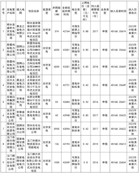| 國家電網(wǎng)公布2023年第六批可再生能源發(fā)電補(bǔ)貼項(xiàng)目名單 |