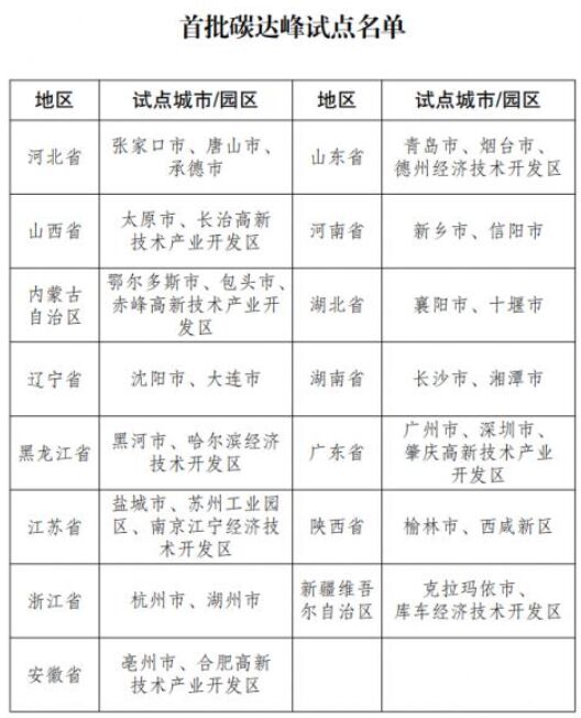 ·國(guó)家發(fā)展改革委公布首批碳達(dá)峰試點(diǎn)名單