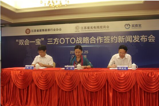 2015年9月25日,由電工電氣電子商務(wù)交易平臺(tái)買賣寶與江蘇省光電線纜商會(huì)、江蘇省裝飾裝修行業(yè)協(xié)會(huì)共同舉辦的“雙會(huì)一寶”三方OTO戰(zhàn)略合作簽約新聞發(fā)布會(huì)在江蘇南京隆重召開。