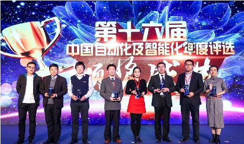 倍福北京區(qū)域銷售經(jīng)理安會民(右二)代表公司上臺領(lǐng)獎。