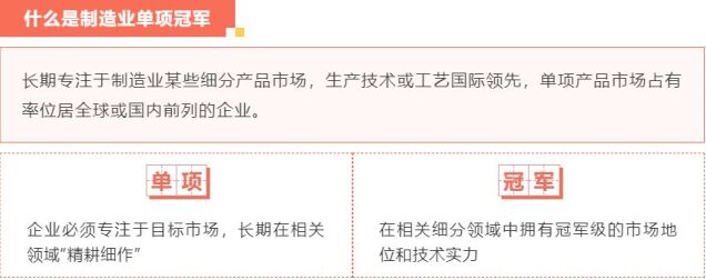 制造業(yè)單項冠軍旨在引導(dǎo)制造業(yè)企業(yè)專注創(chuàng)新和質(zhì)量提升,在更多細分產(chǎn)品領(lǐng)域形成全球市場、技術(shù)等方面領(lǐng)先的單項冠軍地位,提升我國制造業(yè)國際競爭力,促進我國產(chǎn)業(yè)整體在全球產(chǎn)業(yè)鏈中邁向高端。