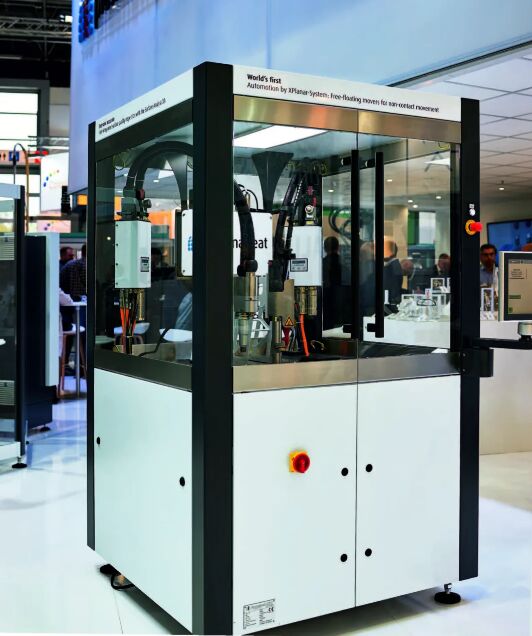 總部位于德國施泰因哈根的 Plasmatreat 有限責任公司是一家專為高效表面處理和環(huán)保生產(chǎn)工藝提供等離子體系統(tǒng)的制造商,公司在去年的 2019 年德國杜塞爾多夫橡塑展 K 展上展出了一款全新的等離子體處理裝置。該處理裝置創(chuàng)造性地采用了倍福的 XPlanar 平面磁懸浮輸送系統(tǒng)實現(xiàn)高精度和靈活的工件輸送。XPlanar 取代了以前用于輸送 PCB 板等敏感元件的系統(tǒng),并且無需安裝復雜的六軸機器人和直線電機。 等離子體處理裝置可以將不同材料的表面處理分為兩個階段,Plasmatreat 的設計負責人 Jochen Stichling 闡述道:“在第一階段,基板被移動到噴嘴下方進行清潔和活化。在第二階段,用噴嘴噴涂功能性涂層!彼忉,公司在這方面一直專注于創(chuàng)新:“我們需要一個處理速度快、完全可編程且無磨損的系統(tǒng)來輸送工件。而在定制化編程軌跡和行程方面,倍福的 XPlanar 平面磁懸浮輸送系統(tǒng)是不二之選! 由可自由懸浮的動子組成的平面電機輸送系統(tǒng) XPlanar 平面磁懸浮輸送系統(tǒng)將可以隨意排列的傳輸平面模塊與懸浮在其上方的動子托盤的多維定位能力完美結(jié)合于一體,可以實現(xiàn)快速、靈活及高精度定位。動子可以在二維平面上進行無摩擦、無接觸的運動,最高速度可達 4 m/s,加速度可達 2 g,重復定位精度可達 50 μm;運行過程中幾乎不會產(chǎn)生任何噪音或機械磨損。該系統(tǒng)不僅支持二維 X/Y 空間內(nèi)的定位運動,還提供在必要時讓動子做六自由度運動的附加功能: – 最大 5 mm 的升降運動(空載), 可選擇稱重功能 – 最大 5° 傾斜運動,用于處理液體的輸送 – 最大 ±15° 的旋轉(zhuǎn)或者在特定傳輸平面模塊上 360° 的旋轉(zhuǎn); Plasmatreat 等離子體表面處理設備中使用的 XPlanar 輸送系統(tǒng)由 6 個 240 x 240 mm 的平面模塊和 1 個動子托盤組成。