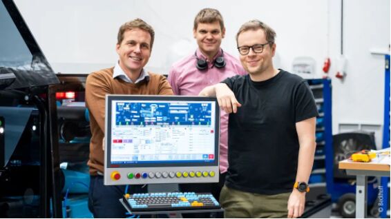 包括 CEO Staffan Nordlinder(左)和軟件工程師 Jakob Sagatowski(右)在內(nèi)的 DP Patterning工程師們?cè)陂_發(fā)DPP技術(shù)的自動(dòng)化技術(shù)期間,與瑞典倍福的運(yùn)動(dòng)控制產(chǎn)品專家 Marcus Aldrin(中)展開了密切合作。