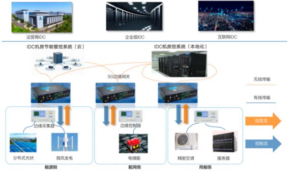 對(duì)于IDC機(jī)房場(chǎng)景,亞信科技攜手各運(yùn)營(yíng)商進(jìn)行IDC機(jī)房零碳綠能改造,以省為單位推進(jìn)項(xiàng)目。在每個(gè)IDC機(jī)房及配套的庫(kù)房、辦公樓屋頂安裝太陽(yáng)能光伏為數(shù)據(jù)中心供電,利用邊緣計(jì)算、5G、AI等技術(shù)將所有運(yùn)行數(shù)據(jù)和設(shè)備運(yùn)行狀況上傳至IDC機(jī)房節(jié)能管控系統(tǒng)云上,實(shí)現(xiàn)一個(gè)平臺(tái)集中控制。