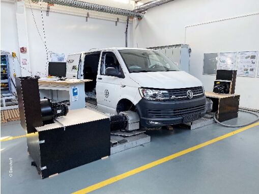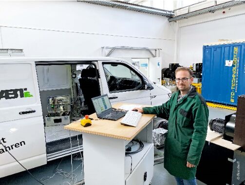 肯普滕應(yīng)用技術(shù)大學(xué)的試驗(yàn)臺(tái)正在測(cè)試一輛由 ABT 公司完成電動(dòng)轉(zhuǎn)型的大眾廂式車