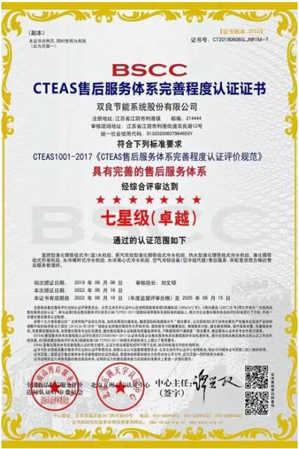 2019年通過(guò)業(yè)內(nèi)唯一“CTEAS售后服務(wù)體系完善七星級(jí)(卓越)”認(rèn)證。