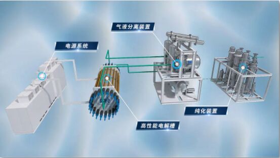 此次交付的綠電智能制氫系統(tǒng)發(fā)揮了最具規(guī);瘧(yīng)用前景的“節(jié)能高效、無人值守”設(shè)計(jì)理念,通過向電解槽中接入直流電,讓水分子在電極上產(chǎn)生電化學(xué)反應(yīng),分解成氫氣和氧氣,再利用氣液分離器對(duì)氫氣進(jìn)行堿液分離,最后利用純化裝置提純獲得高品質(zhì)氫氣,可廣泛應(yīng)用于石化、煤化工、鋼鐵、合成氨、交通等領(lǐng)域。從今年3月項(xiàng)目中標(biāo),到10月在雙良測(cè)試中心進(jìn)行各項(xiàng)指標(biāo)測(cè)試(相關(guān)指標(biāo)均達(dá)到甚至超過設(shè)計(jì)值),雙良新能源制氫團(tuán)隊(duì)以精益求精的態(tài)度,不斷優(yōu)化方案、細(xì)節(jié),并且克服了疫情對(duì)生產(chǎn)進(jìn)度帶來的影響,最終保質(zhì)保量完成了交付。