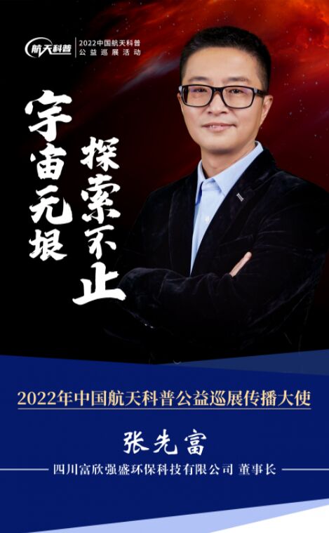 2022年11月30日,四川富欣強(qiáng)盛環(huán)保科技有限公司董事長張先富受邀為2022年中國航天科普公益巡展傳播大使,在中央電視塔中國航天科普主題展區(qū)參加航天科普公益巡展活動(dòng)。
