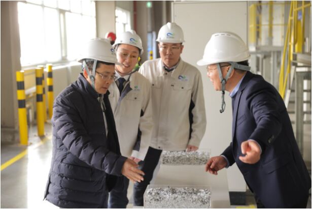 全國(guó)人大代表周云杰(左一)在海爾再循環(huán)互聯(lián)工廠調(diào)研
