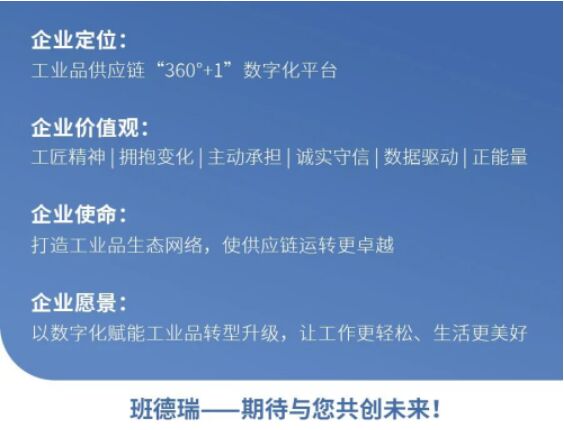 班德瑞以客戶為中心,關(guān)心客戶在成本、服務(wù)、交付、時間、產(chǎn)品、質(zhì)量等方面的真實需求,通過班德瑞MRO商城,整合環(huán)保領(lǐng)域上游供應(yīng)商的實時庫存數(shù)據(jù),提升供應(yīng)鏈貨期,確保正品行貨與服務(wù)質(zhì)量,為客戶提供專業(yè)的采購數(shù)字化升級解決方案,為客戶建立一個專業(yè)可信賴的管理平臺。未來,班德瑞將繼續(xù)深耕工業(yè)品行業(yè),立志為客戶帶來更優(yōu)質(zhì)的服務(wù)!