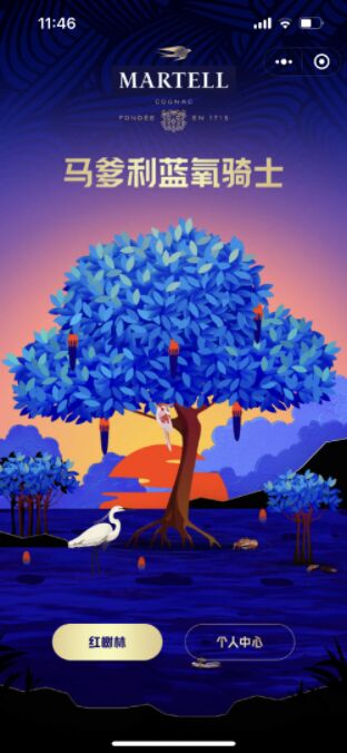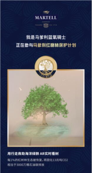 紅樹林被譽(yù)為大自然的“天然氧吧”,馬爹利攜手“保護(hù)國際基金會(huì)”化身“藍(lán)氧騎士”守護(hù)紅樹林,為將保護(hù)自然生態(tài)環(huán)境的理念帶到每個(gè)人身邊。在2023年3月期間,馬爹利“藍(lán)氧騎士”小程序同步上線,通過豐富有趣的內(nèi)容科普提升用戶對(duì)紅樹林生態(tài)系統(tǒng)的了解,并以虛擬種植的現(xiàn)實(shí)增強(qiáng)技術(shù),令每個(gè)用戶都可沉浸式地參與到紅樹林的“守護(hù)”中來。