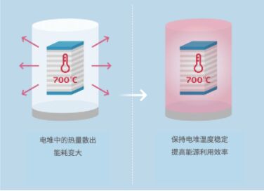 SOEC的電解模式是將該電堆放入用絕熱材料包裹的高溫機(jī)器“熱模塊”中,并向其中送入700℃高溫的水蒸氣來進(jìn)行電解。