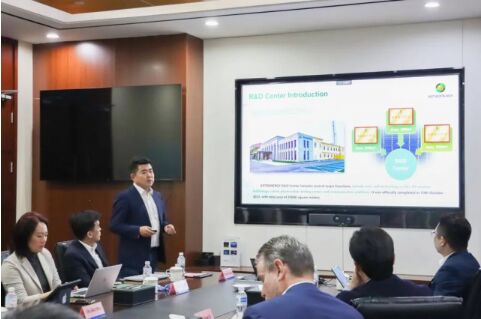 4月6日,德國萊茵TüV集團(以下簡稱“TüV萊茵”)全球產(chǎn)品服務(wù)執(zhí)行副總裁Kimmo Fuller一行赴正泰新能源杭州園區(qū)走訪交流。正泰新能源董事長兼總裁陸川熱情接待。