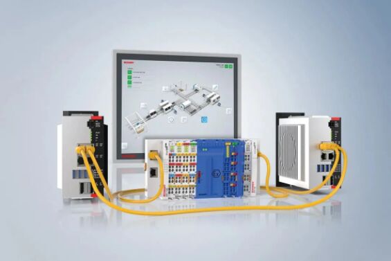 帶工業(yè) PC、耦合器、I/O、驅(qū)動器、繼電器和系統(tǒng)模塊的模塊化系統(tǒng),安裝在可擴展的底板上
