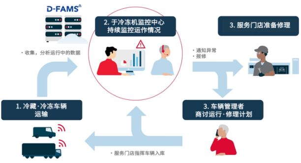 電裝此次推出的“售后維護(hù)包”是涵蓋遠(yuǎn)程監(jiān)控和維護(hù)保養(yǎng)的配套服務(wù),包括D-FAMS遠(yuǎn)程監(jiān)控卡車(chē)上安裝的冷凍機(jī),及時(shí)檢測(cè)并通知異常情況,以及支持在故障前更換零件、故障時(shí)修復(fù)的維護(hù)保養(yǎng)服務(wù)。