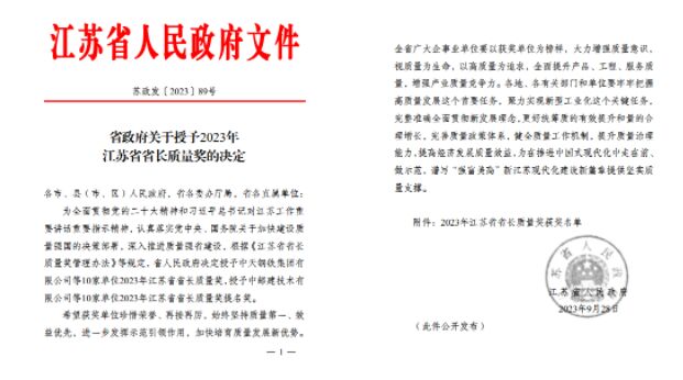 作為經(jīng)濟大省、制造業(yè)大省,江蘇歷來重視質(zhì)量強省建設(shè),發(fā)力打造的質(zhì)量和品牌綜合實力位居全國前列,江蘇省省長質(zhì)量獎是江蘇省政府設(shè)立的質(zhì)量領(lǐng)域最高獎項,包括“江蘇省省長質(zhì)量獎”和“江蘇省省長質(zhì)量提名獎”兩個獎項,主要授予全省范圍內(nèi)質(zhì)量管理模式先進、成效卓越,體現(xiàn)標(biāo)桿引領(lǐng)作用的各類組織,每年評定一次,評定數(shù)量各不超過10個。