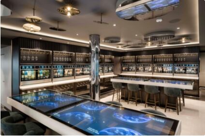 圖5:MSC神女號(hào)船上配備沉浸式數(shù)字化的太陽(yáng)神酒吧,邀葡萄酒愛(ài)好者探尋美酒背后的故事