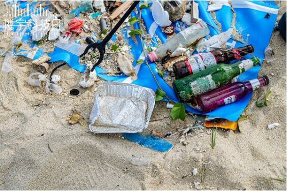 然而,此時(shí)此刻,斑駁的海灘上,一片又一片被卷向海岸線的塑料袋、易拉罐、泡沫,給了理想狀態(tài)以沉重的一擊。