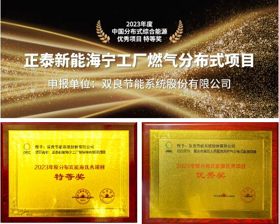 近日,由中國能源研究會分布式能源專業(yè)委員會、中國能源網(wǎng)主辦,主題為“構(gòu)建分布式能源新業(yè)態(tài) 助力新型能源體系建設”的分布式能源國際論壇在重慶召開,雙良節(jié)能憑借“正泰新能海寧工廠燃氣分布式項目”榮獲“2023年度分布式能源優(yōu)秀項目特等獎”;憑借“重慶第五人民醫(yī)院項目“榮獲“2023年度分布式能源優(yōu)秀項目優(yōu)秀獎”。
