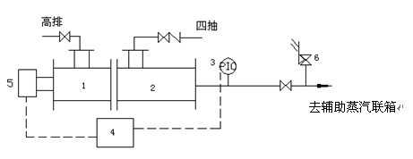 在發(fā)電生產(chǎn)過程中,大部分蒸汽直接用于發(fā)電,同時,為了生產(chǎn)的需要,還要從汽輪機抽取部分蒸汽用于其他用途。如北方地區(qū)電廠,鍋爐一般都裝有蒸汽暖風機,冬季廠房采暖也要用大量的蒸汽,南方電廠夏季采用溴化鋰制冷也需要低壓蒸汽。另外,鍋爐油槍的霧化,鍋爐吹灰等,還有對于300~600MW機組鍋爐給水泵用小汽輪機拖動。小汽輪機的驅動蒸汽,也要用大汽輪機的抽汽。這些非發(fā)電用蒸汽一般都要求有較穩(wěn)定的壓力,而汽輪機隨著電負荷的變化,其抽汽壓力也會變化,為了滿足非發(fā)電用蒸汽對壓力穩(wěn)定的要求,同時降低非發(fā)電用汽對機組經(jīng)濟性的影響,設計上對非發(fā)電用汽一般都采用兩種蒸汽做汽源,在高負荷時用低壓抽汽作汽源,在低負荷時用高壓抽汽減壓供汽。以國內300W和600MW電廠用汽系統(tǒng)的典型設計為例,為保證廠用汽系統(tǒng)壓力的穩(wěn)定,設計上采用中壓缸排汽(簡稱中排)和高壓缸排汽(簡稱高排)兩路汽源,當機組負荷較高時,由中排供汽,當機組負荷較低時,由于中壓缸排汽壓力降低,不能滿足廠用汽的需要,改由高排減壓供汽。對于亞臨界300MW和600MW機組,其高壓缸和中壓缸排汽溫度基本上相同,在330℃左右,但壓力相差較大,作功能力有較大的差別,高排蒸汽經(jīng)減壓供應輔助蒸汽,白白損失了高排蒸汽的作功能力,降低了整個機組的經(jīng)濟性。 如果能用高排蒸汽的壓力能將中排蒸汽的壓力提高滿足輔助用蒸汽的需要,則可以減少高排蒸汽的用汽量,提高整個機組的經(jīng)濟性。 汽輪機壓力匹配器是把高、低蒸汽混合、輸出中等壓力蒸汽的設備。 壓力匹配器的原理:壓力匹配器的作用是利用高壓蒸汽有用能,提高低壓蒸汽的壓力,兩者混合,形成中等壓力的蒸汽。因此壓力匹配器是輔助蒸汽聯(lián)箱節(jié)能的理想設備。 壓力匹配器在輔助蒸汽系統(tǒng)中的安裝系統(tǒng)圖如下:
