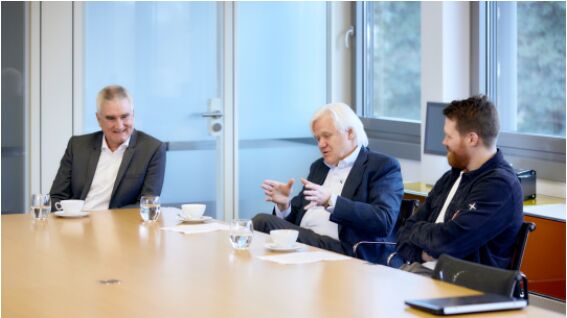 Hans Beckhoff(中間)和 Martin Rostan(左)回顧 EtherCAT 技術(shù)過去 20 年的發(fā)展歷程并與代表下一代管理層的 Johannes Beckhoff(右)分享了他們多年積累的經(jīng)驗(yàn)