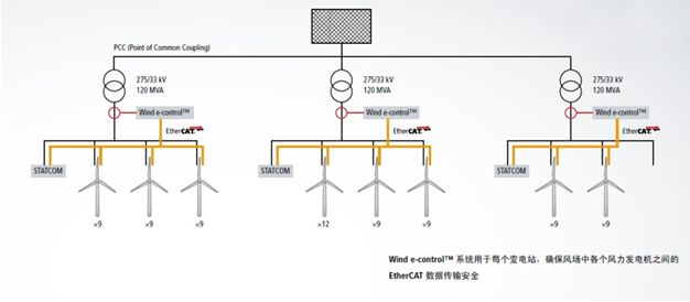 為了確保風(fēng)場擴(kuò)建后能夠為蘇格蘭格拉斯哥市可靠地供電,運(yùn)營商使用了EtherCAT高速通訊系統(tǒng)及相應(yīng)的控制組件。 圖片顯示了一組PCC(公共連接點) 近日,歐洲風(fēng)能協(xié)會發(fā)布了一些預(yù)測數(shù)據(jù):歐洲風(fēng)電將取得進(jìn)一步的動態(tài)發(fā)展,到 2020 年,風(fēng)電總裝機(jī)容量將實現(xiàn) 64%的增長。作為這一發(fā)展的組成部分,數(shù)十臺總輸出量為 217 兆瓦的風(fēng)力發(fā)電機(jī)最近由法國阿爾斯通公司安裝在了蘇格蘭風(fēng)場中。極速EtherCAT通訊網(wǎng)絡(luò)和Beckhoff相應(yīng)的 I/O 組件構(gòu)成這一歐洲最大陸上風(fēng)電項目的通訊主干。 阿爾斯通這一最新的風(fēng)電項目主要在蘇格蘭格拉斯哥附近擴(kuò)建的Whitelee風(fēng)場中運(yùn)行。新增的 217 兆瓦的裝機(jī)容量,足夠滿足 124,000 戶家庭的用電需求。此次陸上風(fēng)場的擴(kuò)建為整個歐洲大陸設(shè)立了新標(biāo)準(zhǔn),此外,這也是阿爾斯通功能強(qiáng)大的 ECO 100 風(fēng)力發(fā)電機(jī)的第一個大型項目。阿爾斯通在該風(fēng)場總共安裝了 69 臺3 兆瓦的 ECO 100 風(fēng)力發(fā)電機(jī),6 臺1.67 兆瓦的 ECO 74 風(fēng)力發(fā)電機(jī)。 先進(jìn)的控制技術(shù)確?煽康娘L(fēng)場運(yùn)營 阿爾斯通的 Wind e-control™ 系統(tǒng)負(fù)責(zé)風(fēng)場內(nèi)的控制任務(wù),如電壓、功率和頻率控制。例如,為了檢查風(fēng)電場并網(wǎng)轉(zhuǎn)換點處的無功功率,Wind e-control™ 系統(tǒng)從風(fēng)場采取了各種措施。每個相應(yīng)國家的電網(wǎng)準(zhǔn)則都可以通過此控制系統(tǒng)可靠地實現(xiàn)。電網(wǎng)準(zhǔn)則中描述的要求是為了保證電網(wǎng)的穩(wěn)定,在可再生能源產(chǎn)業(yè)不斷擴(kuò)大時這是最重要的。除此之外,控制系統(tǒng)允許在控制室進(jìn)行現(xiàn)場運(yùn)營管理或通過與 SCADA 系統(tǒng)進(jìn)行數(shù)據(jù)通訊遠(yuǎn)程進(jìn)行管理。Wind e-control™ 系統(tǒng)已首次在這個風(fēng)場中安裝并成功應(yīng)用。