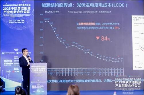 12月1日,2023中歐清潔能源產(chǎn)業(yè)創(chuàng)新合作會議于北京召開。本次會議以促進中歐清潔能源科技交流與合作為宗旨,邀請了中歐清潔能源領(lǐng)域企業(yè)代表、歐洲多國駐華使領(lǐng)館大使或參贊、清潔能源領(lǐng)域知名專家學(xué)者等參會,共同探討與分享中歐清潔能源先進科技和優(yōu)秀合作案例。天合光能受邀出席此次論壇,發(fā)表了《天合光能210R黃金尺寸價值引領(lǐng),共建組件標準化生態(tài)》的主題演講,解析光伏行業(yè)的前沿技術(shù)和設(shè)計趨勢,并分享了天合光能助力歐洲企業(yè)實現(xiàn)凈零碳目標的優(yōu)秀案例。