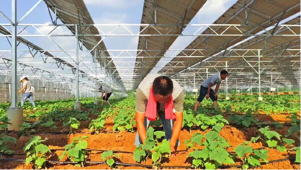 安徽靈璧是國家扶貧開發(fā)重點縣,全縣總人口126.5萬人,其中貧困人口7.5萬人。2016年全縣共有73個國家建檔立卡的貧困村,貧困戶數量2.29萬戶,戶年均收入2700元。中利集團根據當地的實際情況建起了光伏農場,上面光伏發(fā)電,獲得電費收益,下面發(fā)展農業(yè),既可以種植水稻、麥子、玉米等大農業(yè),還可以種植包括中草藥、油用牡丹、無土栽培、花卉、大棚蔬菜等特色高效農業(yè),同時還適合養(yǎng)豬、養(yǎng)羊、養(yǎng)魚、家禽類等特種養(yǎng)殖。讓貧困戶通過“智能光伏+特色農業(yè)+農民就業(yè)”的疊加收益,切實脫了貧、致了富。 3年多來,中利集團在國家精準扶貧、精準脫貧政策指引下,積極創(chuàng)新光伏扶貧工程的系列行動。目前,中利集團已與100多個貧困縣簽訂了包縣脫貧協(xié)議,已在超過40個貧困縣開始建設相關項目。其中,中利集團在江蘇、山東、青海、寧夏等地共建設了370MW農業(yè)光伏示范基地,實現了平均每畝4000多元的特色農業(yè)收益,每年為光伏農場增加特色農業(yè)收益5000多萬元,幫助了20多個貧困村1.3萬多戶貧困家庭脫貧。 “智能光伏+科技農業(yè)”,探索扶貧新模式 通過多年的不斷探索,2015年中利集團,用光伏產業(yè)與現代化大農業(yè)相結合的創(chuàng)新模式,成功研發(fā)了“智能光伏+科技農業(yè)”的全新一代農光互補。這個項目不同于普通的地面扶貧電站,中利的“智能光伏+科技農業(yè)”項目,將光伏支架樁距跨度擴寬到10米,組件高度抬高到4米以上,實現了大型機械化耕種。光伏組件單板安裝、傾斜度等技術,滿足了農作物太陽光照達到70%以上。