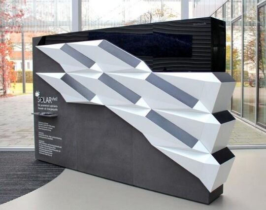 他們的實(shí)驗(yàn)系統(tǒng)旨在使美學(xué)更加愉悅,而不是簡單地將傳統(tǒng)的面板平放在建筑物的正面,同時(shí)還可以更有效地接收陽光以轉(zhuǎn)化為電能。后者是通過一種設(shè)計(jì)來實(shí)現(xiàn)的,在這種設(shè)計(jì)中,每個(gè)面板都朝著太陽傾斜,而不是從建筑物的側(cè)面直面向外。結(jié)果,該裝置比同等數(shù)量的傳統(tǒng)垂直安裝面板多提供多達(dá)50%的能量。